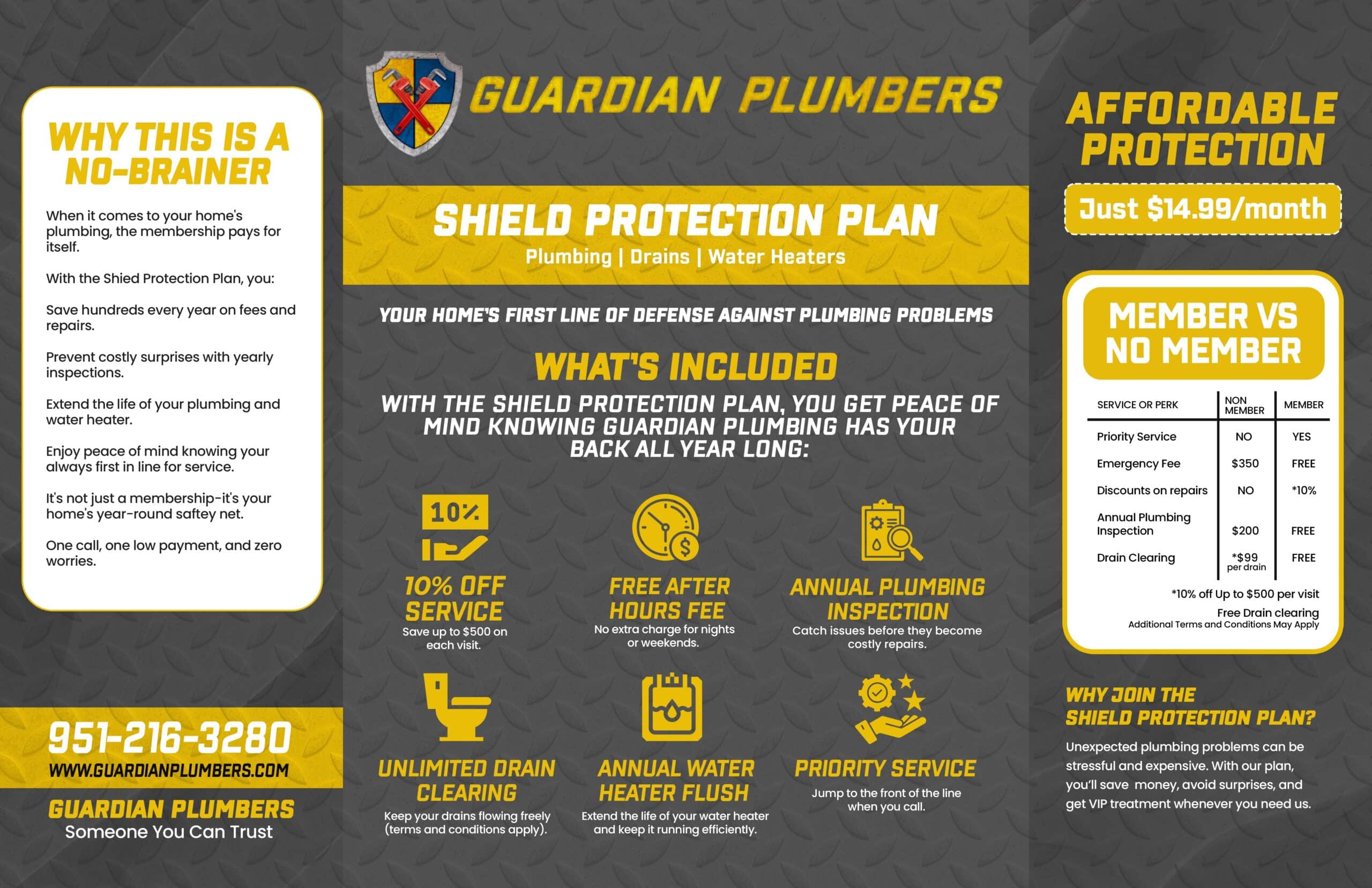 Wouldn’t you like plumbing that just works—without the stress, the mess, or the expense? That’s what the Guardian Shield Protection Plan delivers.